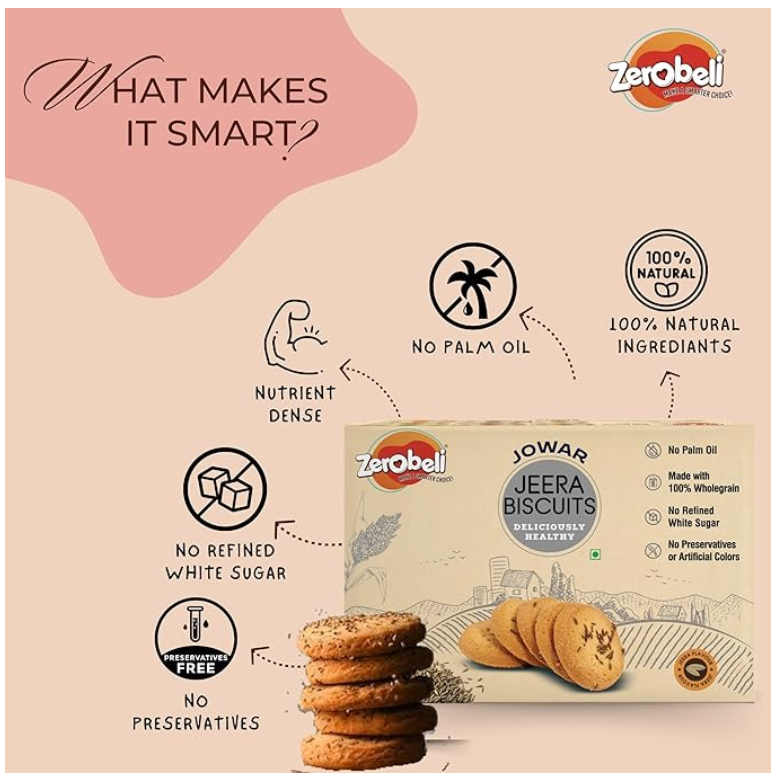 Zerobeli Jowar Jeera Wholegrain Biscuit Without Palm Oil, Crispy & Crunchy | Jeera