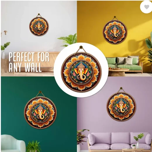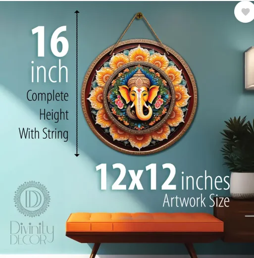Divinity Decor Ganesh Ji in orange and golden mandala Wooden wall Hanging