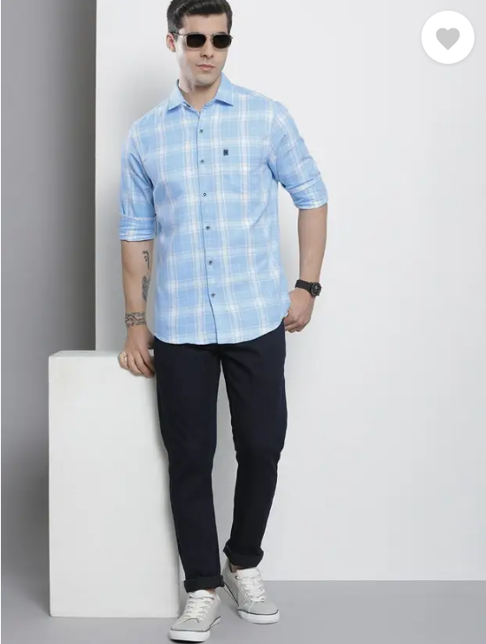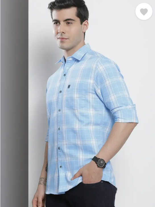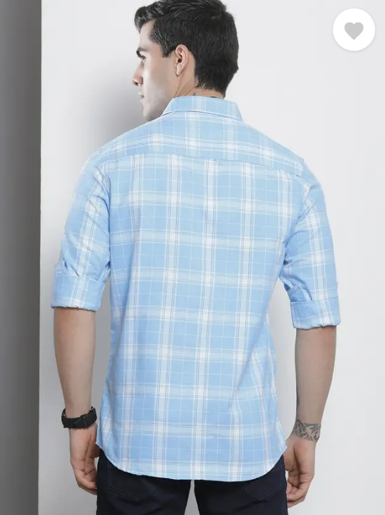 Men Slim Fit Checkered Button Down Collar Casual Shirt Special price