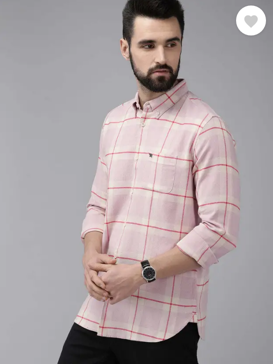Men Slim Fit Checkered Button Down Collar Casual Shirt